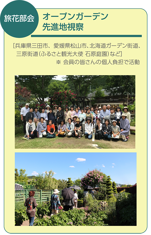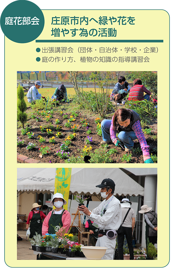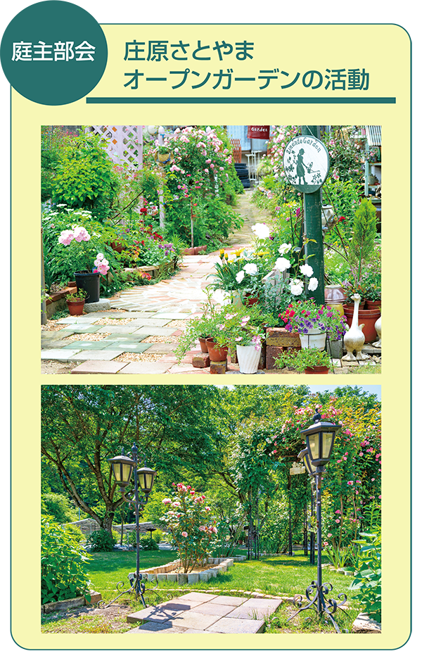 花と緑の美しい景観づくりは、「地域のコミュニティの輪」や「安心安全の地域づくり」、「青少年の健全育成」、「子供の情操教育」そして「交流人口と滞在時間の増加による地域の活性化」に役立つと考え、日常生活で身近な鉢植えやプランター、お庭の花壇、畑など、積極的に取り組んでいる人を応援し、その取り組みが広がることを目的に庄原さとやまオープンガーデンを実施しております。